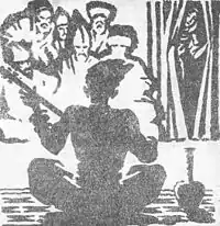![]() «Возвращение Ашик-Кериба». Иллюстрация М. В. Ушакова-Поскочина. Тушь. 1939 | |