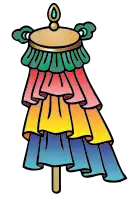 Знамя победы (Санскр. dhvaja) было военным штандартом в Древней Индии. Символ представляет победу Будды над четырьмя марами, или препятствиями на пути просветления. Эти препятствия - гордость, желание, беспокоящие эмоции и страх смерти. В тибетской традиции есть список из одиннадцати различных форм знамени победы, символизирующих одиннадцать конкретных методов преодоления осквернения. На крышах тибетских монастырей можно увидеть множество вариаций изображения знамени победы. Знамена устанавливаются на четырех углах монастырских и храмовых крыш. Цилиндрические штандарты, размещенные на монастырских крышах, часто изготавливаются из меди[8].