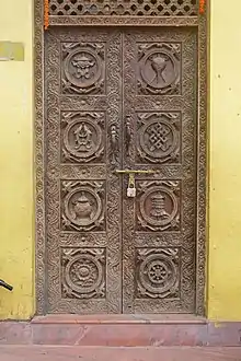 В джайнизме существует несколько вариантов Аштамангалы[10]. У дигамбаров, например, такой набор Благих Эмблем: