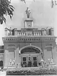 Здание Ашхабадского железнодорожного вокзала (фото 1946 года). Архитектор В. Красильников. Разрушено землетрясением в 1948 году