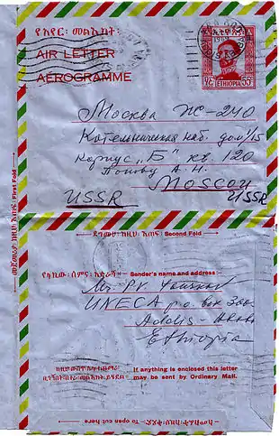 - Аэрограмма. Русско-английский толковый словарь филателистических терминов — А. Юный филателист. Белпочта. Дата обращения: 20 октября 2009.