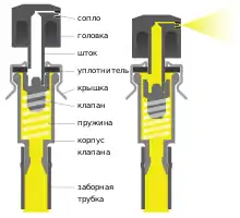 Клапан является основной деталью, способствующей распылению. Клапан включает в себя не только основной механизм, но и детали, с которыми он монтируется.