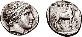 ![]() статер Аэропа II. Отчеканен в Эгах | |