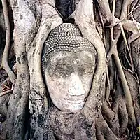 Голова будды, оплетённая корнями дерева