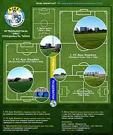 На базе Ajaxi Kunstmuruväljak имеется 4 поля (3 искусственных и 1 травяное). 2 полноценных поля для проведения матчей как товарищеских, так и чемпионата Эстонии. — На искусственном поле в рамках чемпионата до Первой лиги. — На травяном поле возможно проводить матчи любого уровня. 2 тренировочных искусственных поля, 4 раздевалки (+душ, туалет)