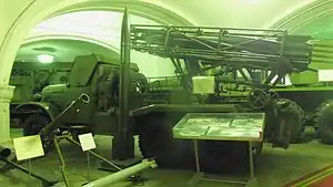![]() Боевая машина БМД-20 со снарядом 53-Ф-951 (слева переносная установка 9П132 с реактивным снарядом 9М22М «Малыш») в Артиллерийском музее в Санкт-Петербурге. | |