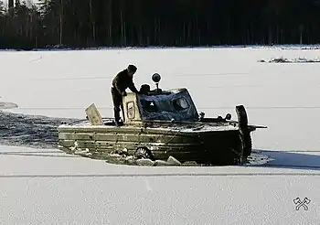 Спуск катера БМК-130М на воду катерным автомобилем ЗИЛ-131 | |