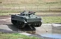 Плавать может с минимальной подготовкой, есть функция заднего хода для плавания, есть помпа для откачки воды. Все 6 опорных катков с каждого борта — с гидроамортизаторами[15].