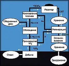 Суть понятия замкнутого цикла использования ядерного топлива заключается в конвертации изотопа уран-238, не способного к цепной ядерной реакции, в изотоп плутоний-239, пригодный к цепной ядерной реакции. Делается это путём облучения урана-238 нейтронами в ядерном реакторе по схеме: