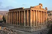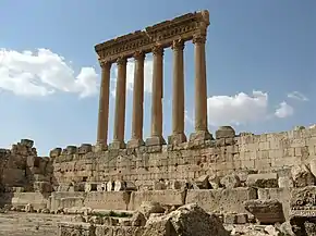 В Баальбеке сохранился в руинах грандиозный храмовый ансамбль, состоявший из пропилеев, богато украшенных резьбой дворов (в одном из них открыты остатки большого здания алтаря), Большого храма (т. н. храма Юпитера), хорошо сохранившихся Малого храма (т. н. храм Вакха или Меркурия) и круглого храма (т. н. храм Венеры) с четырёхколонным портиком.