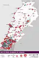 Карта израильских бомбардировок во время Второй ливанской войны. Баальбек был одной из главных целей: было сброшено более 70 бомб.