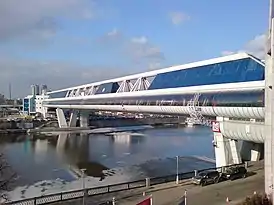 Мост находится по адресу Краснопресненская набережная, 16[2]. Со стороны Краснопресненской набережной вестибюль моста соединён с выходом станции метро «Выставочная» и ТРЦ «Афимолл», на противоположном конце мост переходит в Башню-2000[2][3][4].