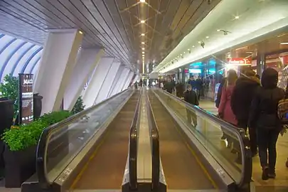 Траволаторы на первом этаже моста. 2013 год