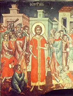 Поскольку ношение пурпурной багряницы в то время считалось привилегией лишь императора Рима, римские солдаты надевали на Иисуса солдатский плащ и терновый венец (вместо царского венца) в качестве «карикатуры», для того, чтобы поиздеваться над Ним.