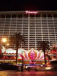 В 1945 году предприниматель Билли Уилкерсон, разделяя предчувствие Багси о большом будущем Лас-Вегаса, задумал построить там роскошное здание казино-отеля. Однако вскоре он израсходовал все свои средства, и Багси, оказав на него давление, перекупил участок. Он решил назвать отель «Фламинго» — предположительно в честь любовницы Вирджинии Хилл, которая носила такое прозвище. Финансировала строительство мафия. Сначала Лански, Лучано и другие вложили в проект около полутора миллионов долларов, но эта сумма быстро увеличилась до шести миллионов — в основном из-за амбициозных планов Сигела и мошенничества его поставщиков, которые, пользуясь его полным незнанием нюансов строительного дела, продавали гангстеру одни и те же материалы по нескольку раз.