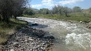 В районе села Ельтай ориентируется на запад лишь с небольшим уклоном к северу. Ниже по берегам реки стоят сёла Бадам (Каратобинский сельский округ), Бадам 2, Каратобе[ком 7], Карабастау[ком 8], Бадам (Бадамский сельский округ)[ком 9], южной окраине города Шымкент[8].