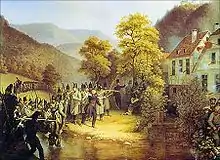 Поражение, которое республиканская партия потерпела в первом предварительном общегерманском парламенте побудило её составить план вооруженного восстания, а взрыв был ускорен арестом Фиклера 8 апреля; 12 апреля Геккер и Струве издали в Констанце открытое воззвание к вооруженному восстанию и приглашение собираться в Донауэшингене; но и правительство не оставалось бездеятельным, и так как верность баденских войск была весьма подозрительна, то оно призвало на помощь войска из соседних государств. Благодаря этому кончилась неудачей попытка, сделанная в Донауэшингене, затем следовало поражение, понесенное республиканцами 20 апреля при стычке между Кандерном и Шлехтенгаузом, в котором предводитель союзных войск, Фридрих Гагерн, пал жертвой своего мужества ; далее следовало взятие Фрайбурга 24 апреля, которым овладели было отряды волонтёров, и наконец, сражение при Доссенбахе 27 апреля, в котором легион немецких рабочих Гервега был разбит наголову.