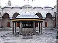 С северо-запада к зданию мечети примыкает двор примерно такой же площади. Он представляет собой перистиль с колоннадой. Стоящие во дворе двадцать колонн состоят из порфира, офикальцита и гранита, они были найдены в византийских православных храмах и древних руинах. Крыша вокруг двора увенчана 24 маленькими куполами. С каждой стороны во двор ведут порталы, пол сделан из многоцветного мрамора.