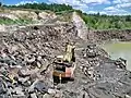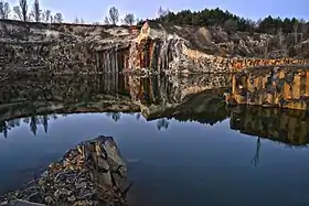 Промышленная добыча ведётся открытым способом. Некоторые карьеры затоплены и в сочетании со спокойной гладью воды базальтовые стены выглядят особенно живописно. Самый красивый карьер с базальтовыми столбами расположен в урочище Янова Долина возле села Базальтовое. Посреди затопленного водой карьера здесь образовался маленький островок, получивший название «Остров любви».