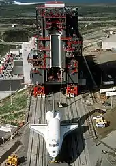 Выполнение программы Спейс Шаттла в стартовом комплексе № 6 было по своим действиям противоположным тому, как это делалось в Космическом центре Кеннеди, то есть орбитальная связка должна была собираться непосредственно на стартовой площадке, вместо того, чтобы сначала собрать её в здании вертикальной сборки и затем переместить. Три перемещаемых по рельсам сооружения, башня запуска, башня мобильного обслуживания и комната замены полезной нагрузки использовались при монтаже орбитального шаттла, внешних баков и ракетных ускорителей. Эти сооружения предназначались для защиты связки шаттла от сильного ветра на площадке и использовались во время серий «тестов на пригодность» с использованием шаттла Энтерпрайз в 1985 году.