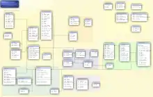 Структурированность подразумевает явное выделение составных частей (элементов), связей между ними, а также типизацию элементов и связей, при которой с типом элемента (связи) соотносится определённая семантика и допустимые операции[11]. - БД включает схему, или метаданные, описывающие логическую структуру БД в формальном виде (в соответствии с некоторой метамоделью).