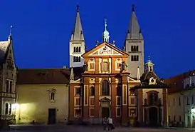 Базилика святого Георгия (чеш. Bazilika svatého Jiří) — старейшая сохранившаяся церковь в Пражском Граде, заложенная Вратиславом I в 920 году в честь святого Георгия. В 973 году церковь была существенно расширена за счёт пристройки аббатства бенедиктинцев, посвящённого тому же святому. В 1142 году базилика существенно пострадала во время крупного пожара, но за короткие сроки была восстановлена почти в первозданном виде, за исключением фасада и некоторых художественных деталей внутреннего убранства. Были достроены две опоковые романские башни со строенными окнами. Более узкую северную башню назвали Евой, более широкую — Адамом[1].