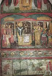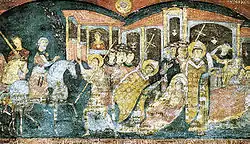 - В соответствии с этим объяснением, принято считать, что фреска написана после смерти Мефодия (885 год).