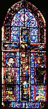 Остальные окна на этом уровне представляют из себя большие цветные композиции без какого-либо метафорического образа, в которые вклеены небольшие изображения древних персонажей, вероятно, взятые из окон существовавших прежде апсид (примерно 1140-е годы) — епископы в произвольном порядке соседствуют с королями из Ветхого Завета и святыми девами.