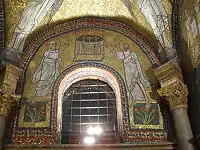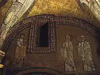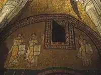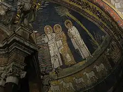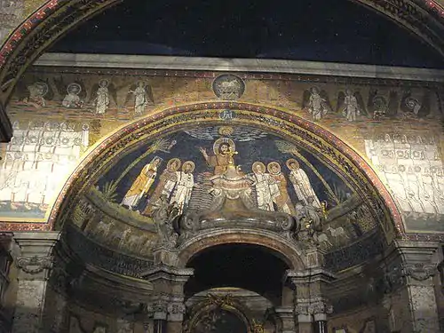 | Святые Агнесса, Пуденциана и Пракседа (слева направо) | Сошествие во ад | Агнец Божий и лани (наверху); Богородица со святыми Пракседой и Пуденцианой, и «Феодора епископа» (внизу) |