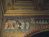 Триумфальная арка, открывающая вход в пресбитерий из основного пространства главного нефа, также украшена сложной мозаикой на темы Апокалипсиса. Точный смысл всей композиции уже не может быть расшифрован, так как отдельные элементы мозаики были уничтожены в ходе перестройки базилики в XVI веке, а сама арка подверглась неудачной реставрации XIX века.