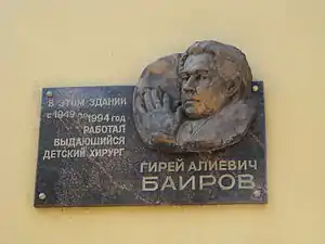 - Мемориальная доска, посвящённая Баирову Гирею Алиевичу
