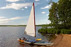 - Дополнительное оборудование: Также в байдарку возможна установка руля и/или паруса, в зависимости от модели. На реках с заметным течением использование руля нередко бесполезно и может привести к серьёзной аварии из-за его застревания на мелкой воде и перекатах.