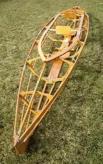 Состоит из деревянного каркаса, обтянутого моржовой или тюленьей кожей. Имеет 1—3 места для гребцов в виде люков в верхней части, с которыми при непогоде герметично соединяется специальная непромокаемая одежда. В разных регионах имеет свои оформления носа и кормы. Кроме того, байдарки к востоку от полуострова Аляска, имеющие более закруглённый обвод дна, являлись чисто морскими, тогда как к западу от полуострова они были плоскодонными и использовались в мелких водах внутренних водоёмов или для прибрежных плаваний[7]. Также, например, алеутская байдарка более узкая, а у эскимосов острова Кадьяк — шире и остойчивее. Аляскинские каяки были и похожими на маленькие умиаки, только с верхним покрытием из кожи и отверстием для гребца[8]. Чаще используется двойное весло, но кадьякские эскимосы применяли однолопастное. Гребут сидя, вытянув вперёд ноги или на коленях, что предпочитали алеуты[9].