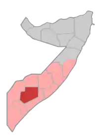 Граничит с сомалийскими регионами Баколь (Bakool), Хиран (Hiiraan), Нижняя Шабелле (Shabeellaha Hoose), Средняя Джубба (Jubbada Dhexe) и Гедо (Gedo).