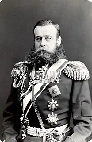 - Бакенбарды а-ля Франц Иосиф — широкие бакенбарды с усами, предполагающие выбритый подбородок. Если подбородок не был выбрит, то оба конца бакенбард внизу завершались бородкой в виде буквы W. В англоязычном мире называются burnsides или sideburns по имени генерала Бернсайда. В России моду на такие бакенбарды распространил генерал Скобелев.