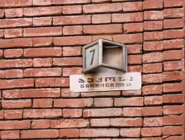 Название улицы по-грузински и по-русски. Советская табличка.