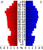 Население округа по возрастному диапазону по данным переписи 2000 года распределилось следующим образом: 19,00 % — жители младше 18 лет, 5,80 % — между 18 и 24 годами, 21,10 % — от 25 до 44 лет, 27,40 % — от 45 до 64 лет и 26,80 % — в возрасте 65 лет и старше. Средний возраст жителей округа составил 48 лет. На каждые 100 женщин в округе приходилось 92,30 мужчин, при этом на каждых сто женщин 18 лет и старше приходилось 89,10 мужчин также старше 18 лет.