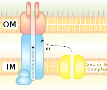 У некоторых патогенных грамотрицательных бактерий существуют специальные системы секреции, которые выводят факторы вирулентности наружу, а иногда и в другие эукариотические или прокариотические клетки. Многие белки, которые переносятся через внешнюю мембрану грамотрицательных бактерий, попали в периплазму через пути Sec или Tat. Некоторые системы секреции представлены единым каналом, проходящим через две мембраны и периплазматическое пространство[1].