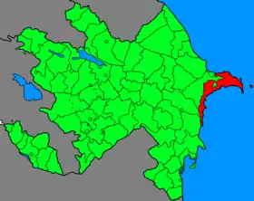 Город расположен в южной части Апшеронского полуострова, на берегу Каспийского моря[25].