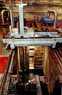 На Балаковской АЭС используется модернизированный серийный ядерный реактор ВВЭР-1000 с водой под давлением, который предназначен для выработки тепловой энергии за счёт цепной реакции деления атомных ядер. Реактор водо-водяной, гетерогенный, корпусной, на тепловых нейтронах, с водой в качестве теплоносителя, замедлителя и отражателя нейтронов. Регулирование мощности реактора осуществляется изменением положения в активной зоне кластеров из стержней с поглощающими элементами, стальными трубками с карбидом бора, а также изменением концентрации борной кислоты в воде первого контура[28]. Проектировщик — ОКБ «Гидропресс»[29]. Изготовители — производственное объединение «Ижорские заводы»[30] (г.Санкт-Петербург) и «Атоммаш»[31] (г.Волгодонск).