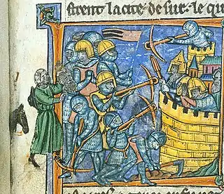 - Гийом Тирский: «было приказано вырыть большие туннели внутри горы и укрепить их балками и другим материалом. Как только рабочие закончили копать, размещённые внутритуннелей горючие материалы были зажжены. Затем, когда опоры сгорели, холм обрушился, и башня, на которую опирались, упала с большим ударом»[101].
