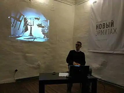 Куратор[12]. Эксперт по современному искусству. Организовывал лектории о современной поэзии, вечера концептуальной поэзии[13], панельные дискуссии на художественных выставках.