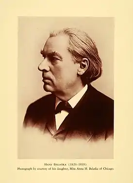 Г. Балатка, работая руководителем Милуокского музыкального общества (1850—1860, 1871—1872), Немецкого театра (1855—1860), а также Чикагской филармонии (1860—1869), внëс значительный вклад в развитие музыкальной культуры Среднего Запада США