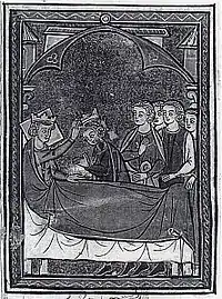 ![]() Гийом Тирский осматривает руки Балдуина (миниатюра) | |