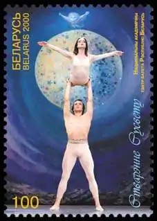В 2000 году почта Белоруссии выпустила серию «Белорусский балет» (Sc #351, 352), оформленную художником А. Гопиенко и состоящую из марки и почтового блока. На марке изображён дуэт Адама и Евы из арт-рок-балета «Сотворение мира» Андрея Петрова. Впервые балет был поставлен в 1971 году на сцене Ленинградского академического театра. Рисунок марки выполнен по фотографии, на которой запечатлены солисты Национального академического Большого театра балета Республики Беларусь (НАБТБ РБ) Наталья Рябцева и Владимир Долгих (постановка Валентина Елизарьева, 1976)[20][≡]: