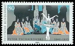 В 1993 году немецкая почта приурочила марку к 100-летию со дня смерти П. И. Чайковского (Sc #1814), на которой изображена сцена из балета «Лебединое озеро»[≡].