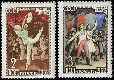 1962: балеты «Красный цветок»[^] и «Пламя Парижа» (ЦФА [АО «Марка»] № 2645, 2646)[^]