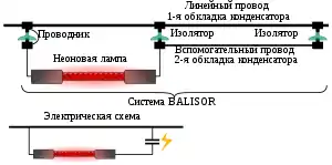Особенностью системы Бализор является то, что энергия для свечения неоновой лампы снимается непосредственно с несущего высоковольтного провода через ёмкостную связь через «антенну» (вторую обкладку конденсатора) с соседними проводами ЛЭП или «землёй». Таким образом, система полностью автономна, не требует никаких внешних электрических подключений. Недостатком такой системы является отсутствие свечения при обесточенной ЛЭП.