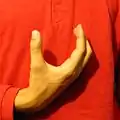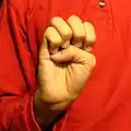 Small-C, большой и указательный палец разогнуты, но последний слегка согнут, так что эти два пальца формируют подобие буквы «C». Остальные пальцы согнуты в кулак.
