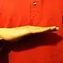 Curved-V, указательный и средний пальцы разогнуты у основания ладони, но согнуты в межфаланговых суставах, а также разведены друг от друга, остальные пальцы сложены в кулак.